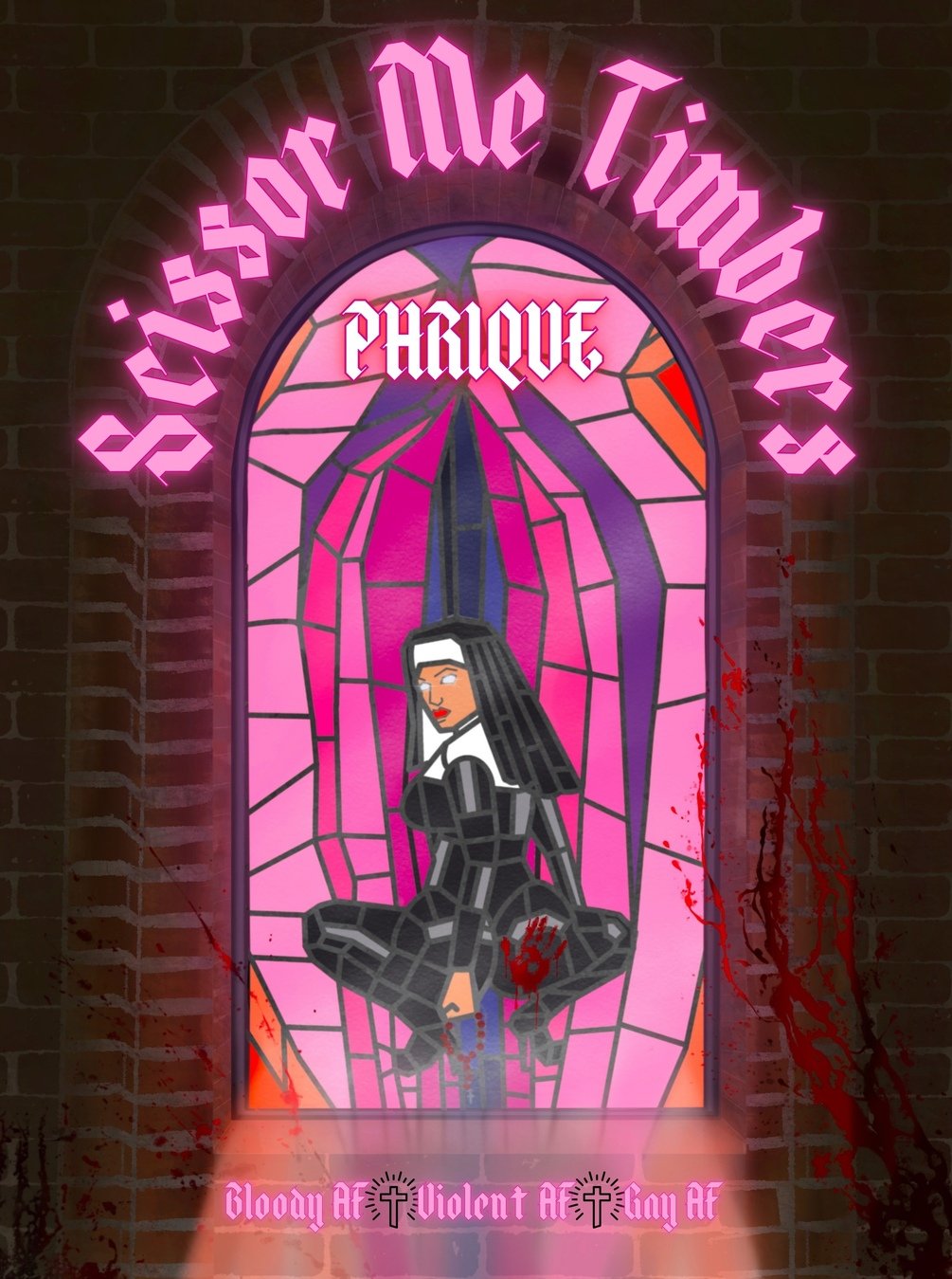 Scissor Me Timbers is a work of Splatterpunk Erotic Horror. This sapphic nunsploitation story contains scenes of extreme violence, graphic sex, and rampant sacrilege. Reader discretion is advised. Amen!
